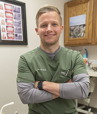 Dr. Diedrich was raised in Shelby Twp., MI and went on to attend Michigan State University’s Lyman Briggs College where he received his Bachelor of Science in Human Biology from 2008-2012. He went on to attend A.T. Still University’s Missouri School of Dentistry and Oral Health from 2013-2017 where he received his Doctor of Dental Medicine (D.M.D.) degree and his certificate in public health. Upon graduation, Dr. Diedrich relocated to Mishawaka with his wife (Kate) in 2017.